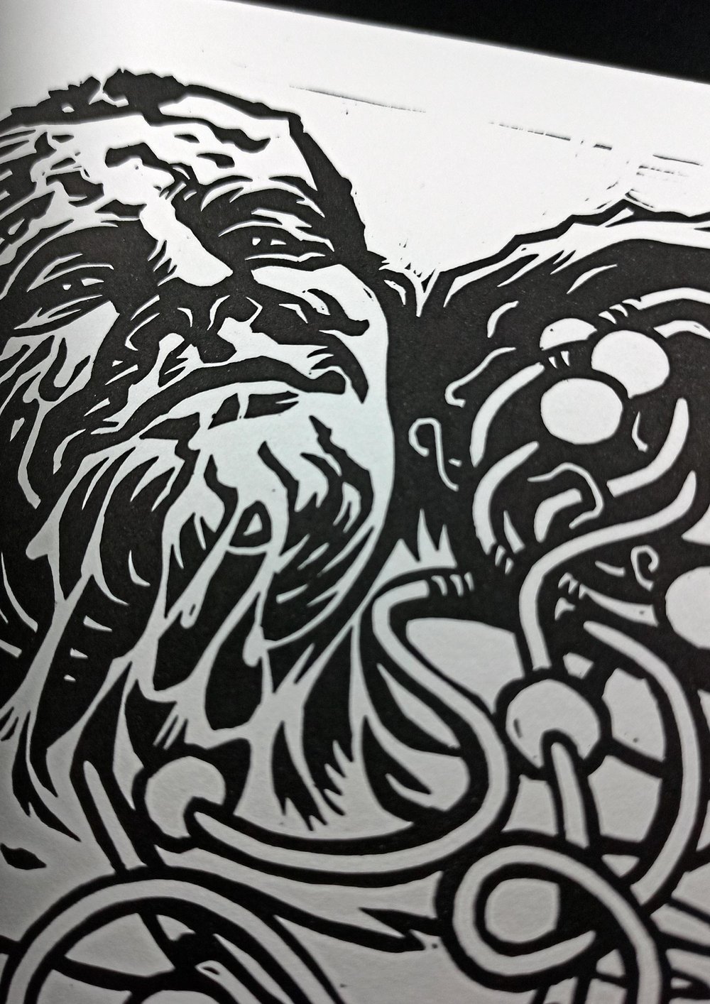 Linoleum carved print on high percent cotton archival mouldmade paper