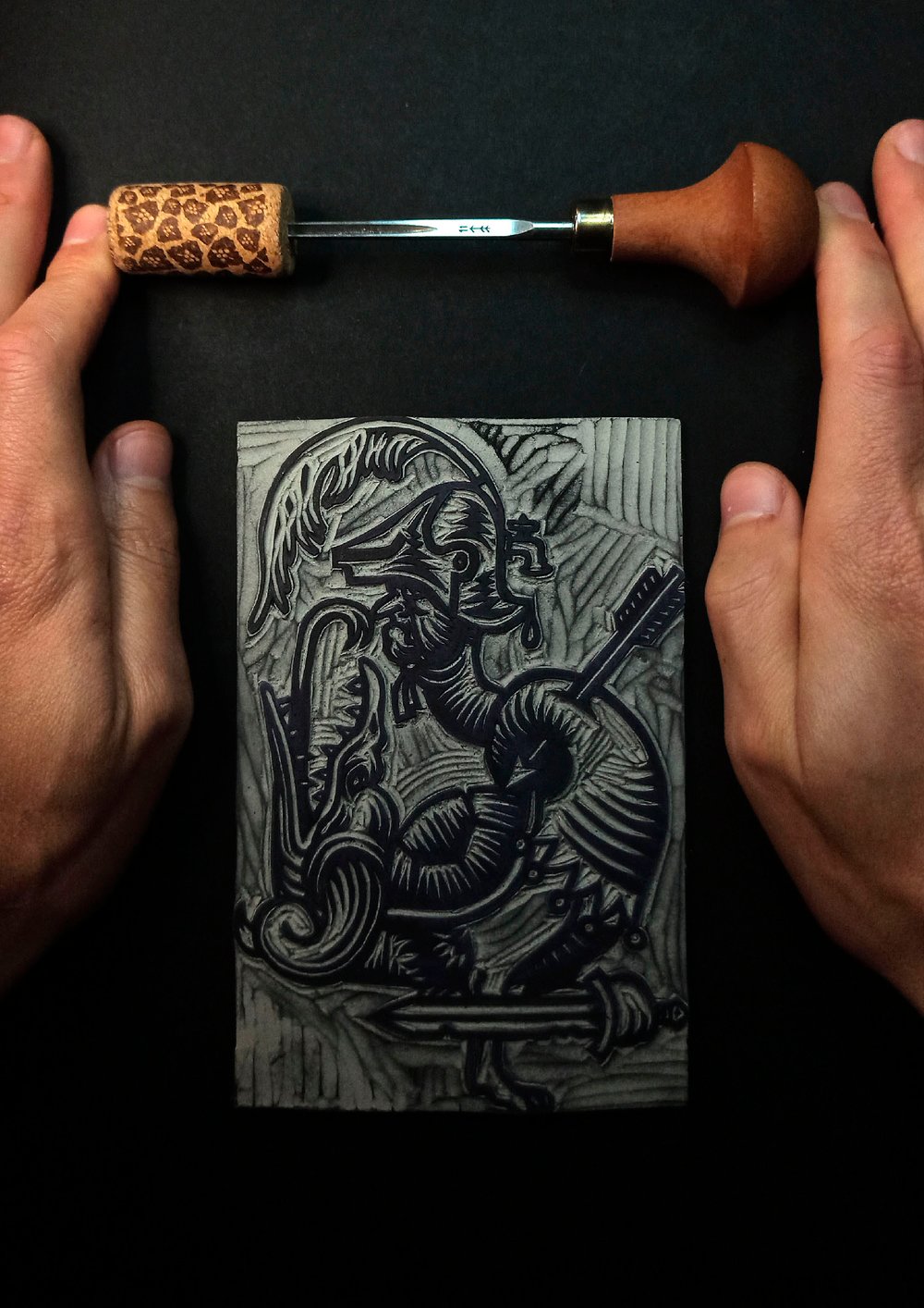 Linoleum carved print on high percent cotton archival mouldmade paper
