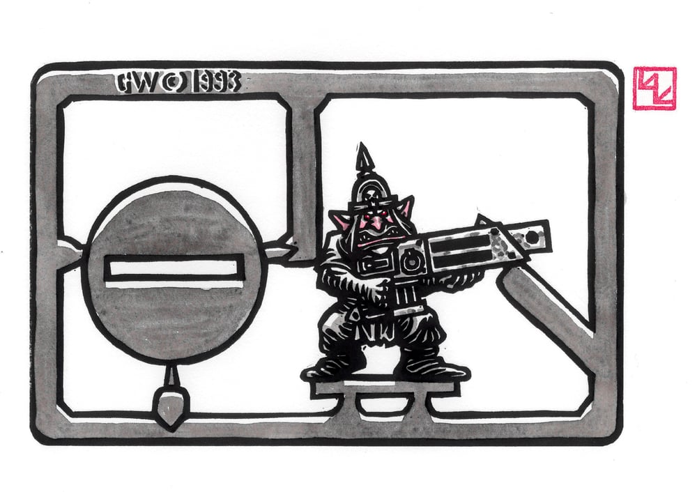 Black oil based ink Caligo, optional Winsor & Newton watercolors and Schmincke Gouache.