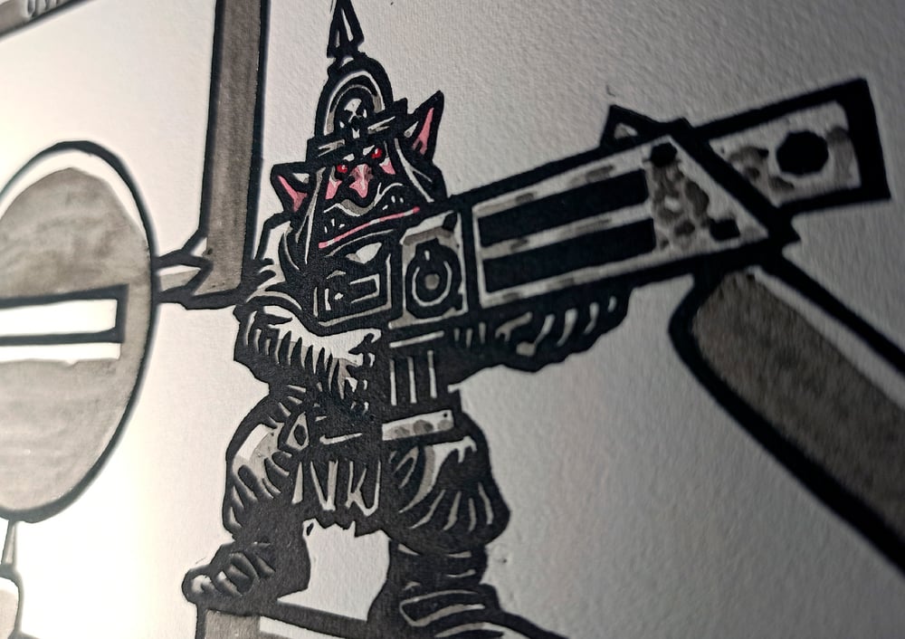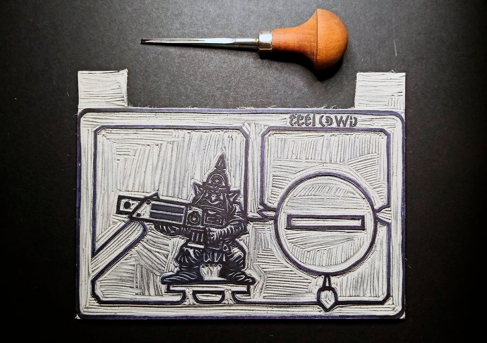 Linoleum carved print on high percent cotton archival mouldmade paper.