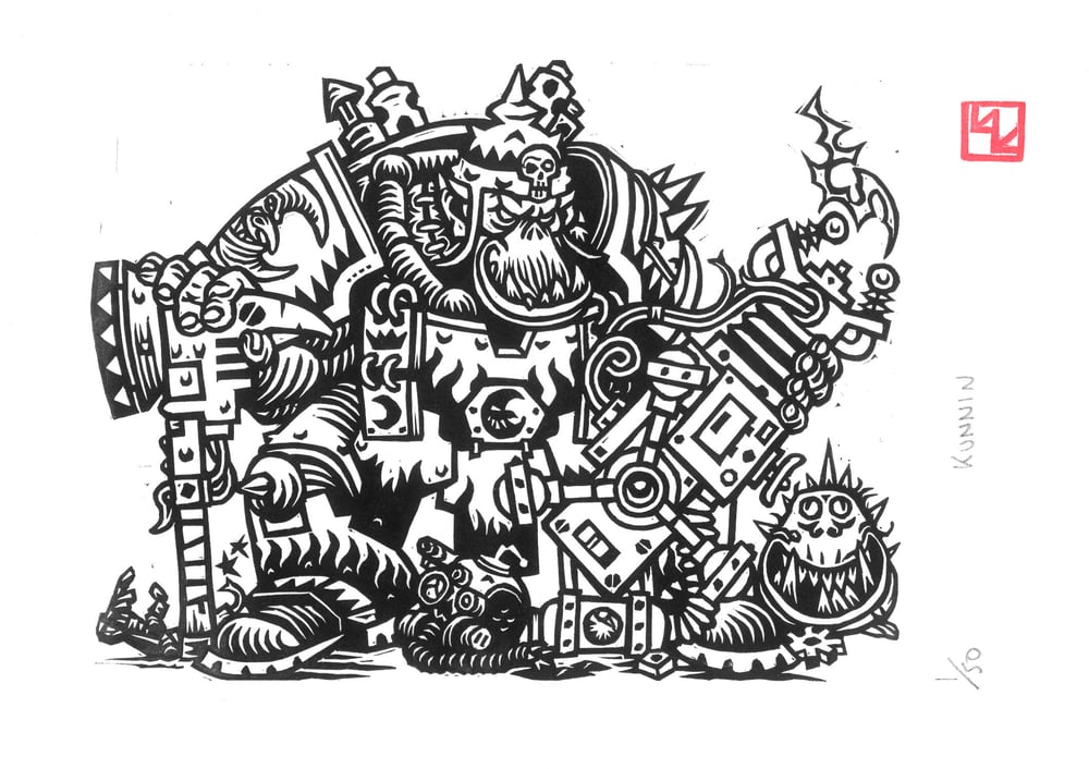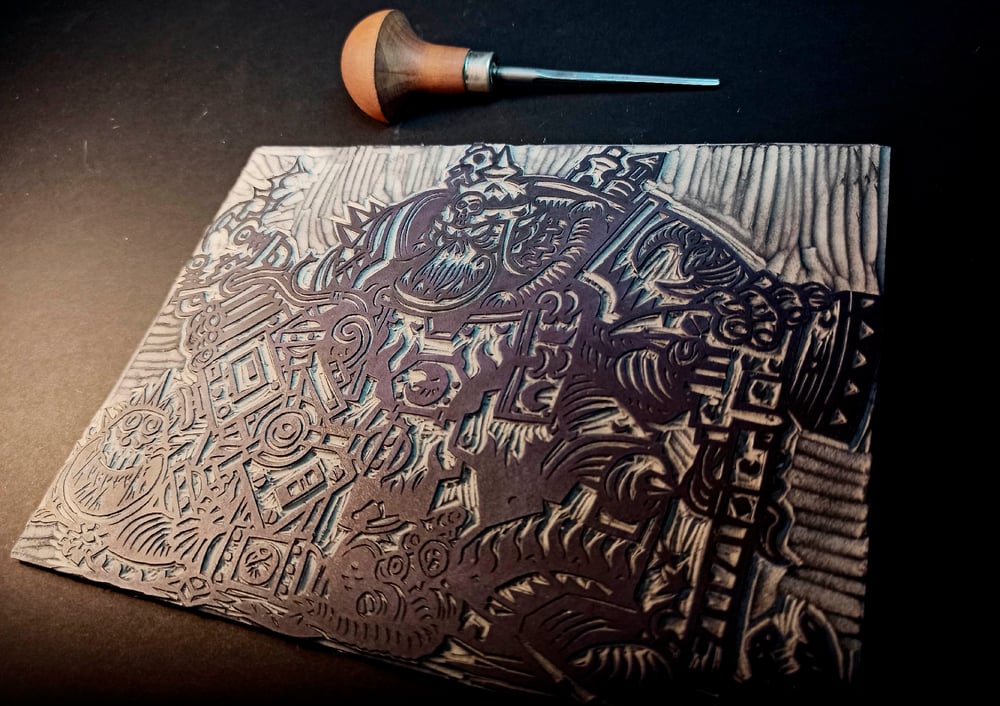 Linoleum carved print on high percent cotton archival mouldmade paper