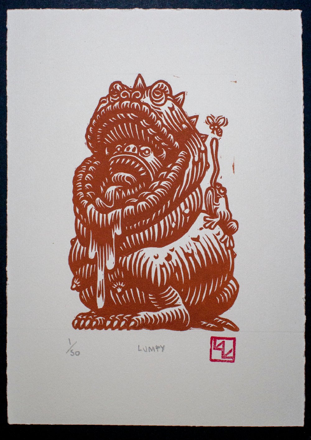 Lumpy Toad Linocut print and Model
