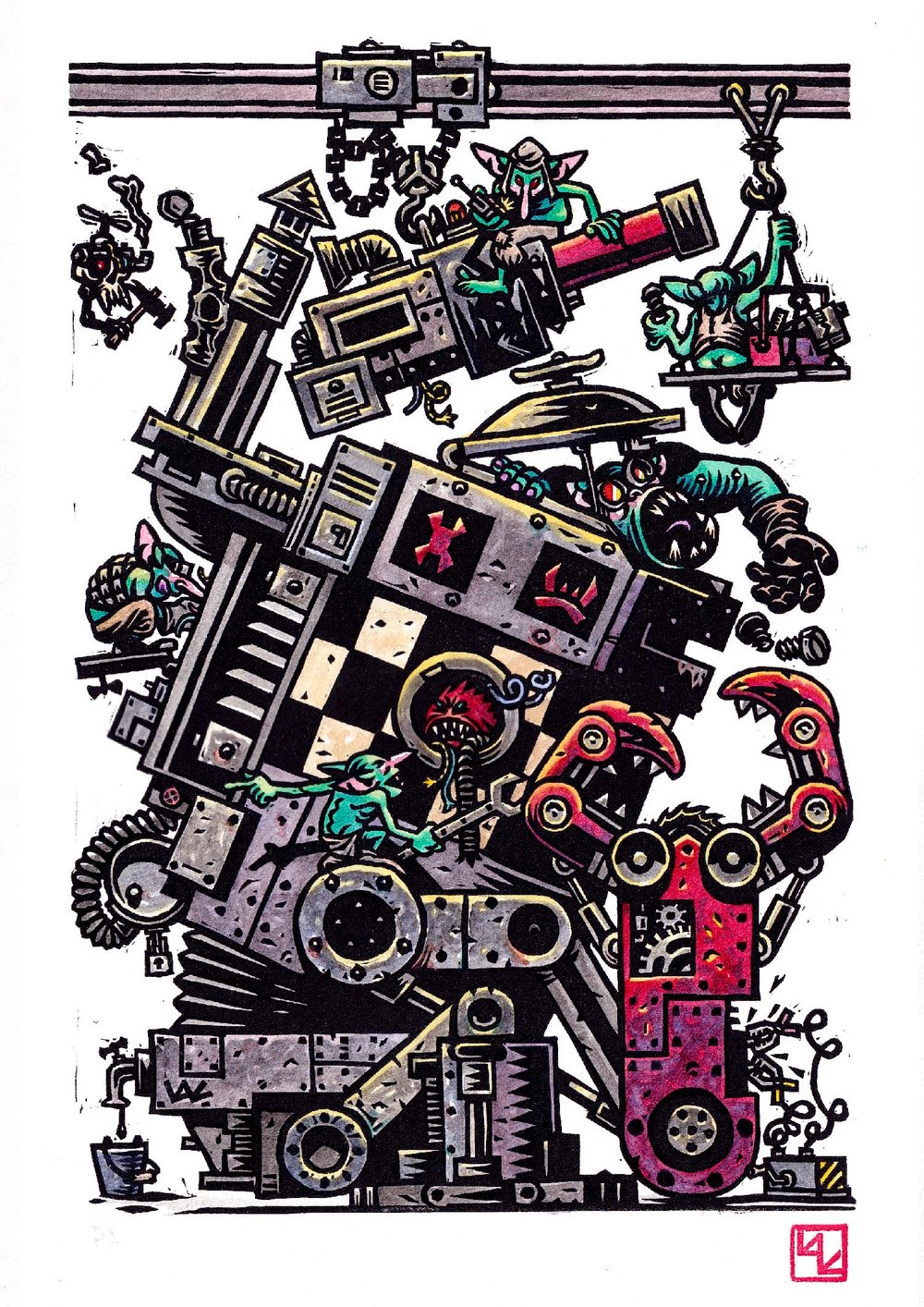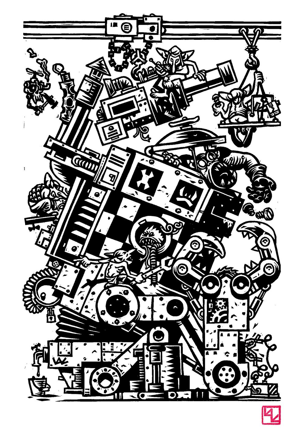 Maintenance Linocut Print