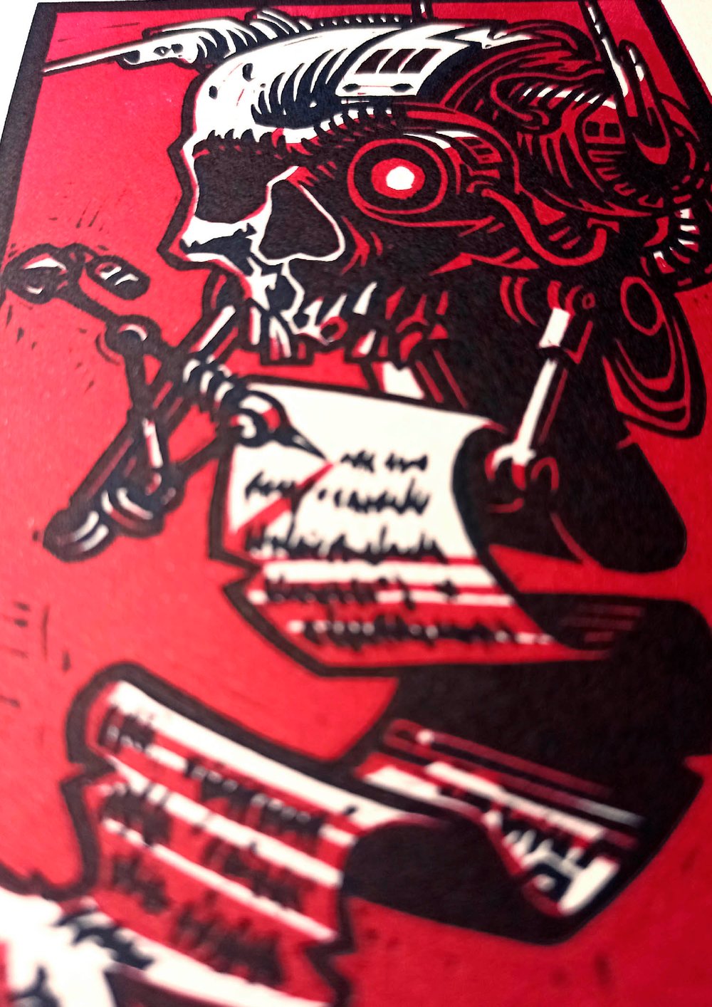 Linoleum carved print on high percent cotton archival mouldmade paper