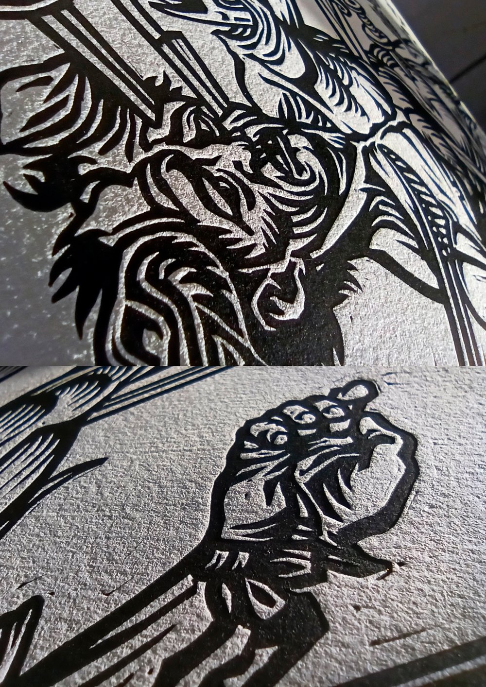 Linoleum carved print on high percent cotton archival mouldmade paper